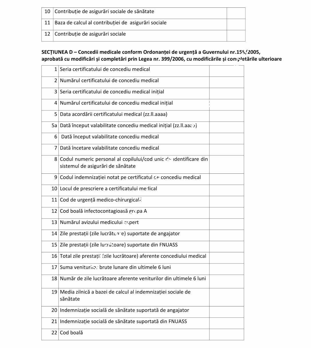 - modificarea unor date privind persoanele asigurate care au beneficiat de certificate de concediu medical în luna/perioada de raportare, precum şi a informaţiilor referitoare la certificatele de concediu medical;