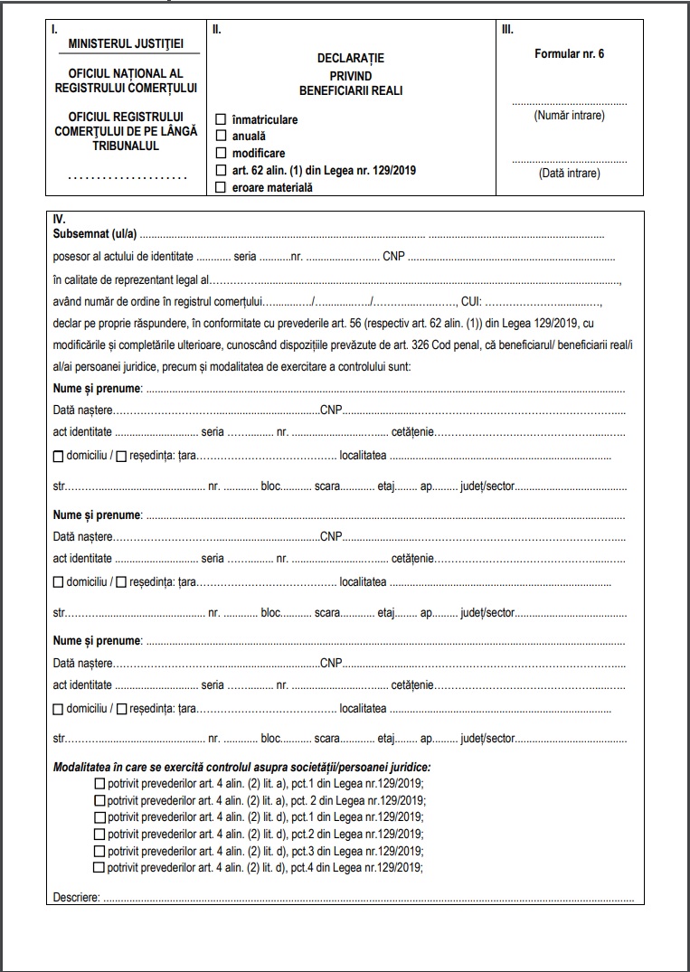 ONRC: modele noi de declarații privind beneficiarii reali